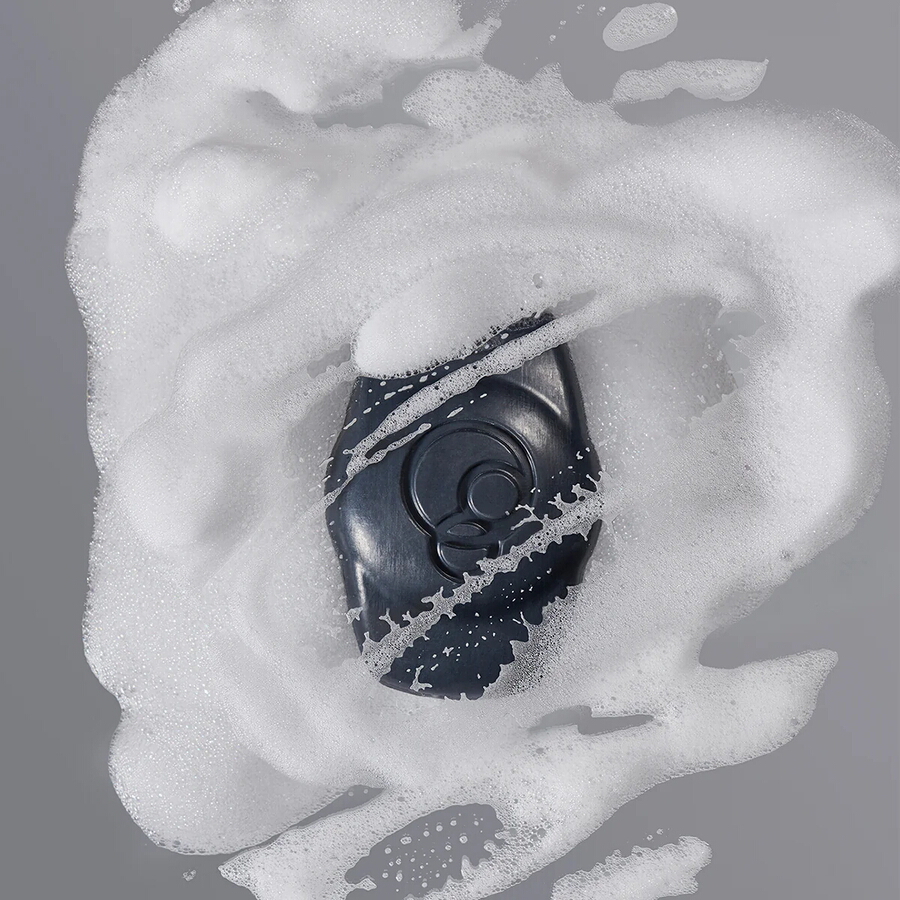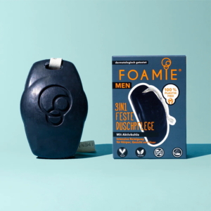The Foamie solid shower care for men with activated charcoal, rosewood and tonka bean for effective cleansing. For body, face and hair.